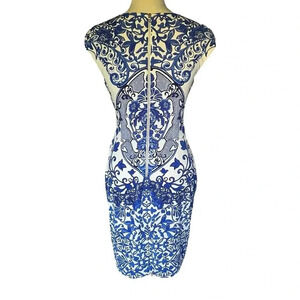 Woman Women Mini Dress White Royal Blue Azulejos Event Occasion Spring Summer Trendy Trends Trending Elegant Statement Piece Soft Comfy Fitted Bodycon Party Travel Style Fashion Impress Statement Floral Artsy Graduation Homecoming