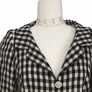 Tailored Botondi Milano Checkered Linen 3/4 Sleeve Blazer featuring 3 pearlized Button Front