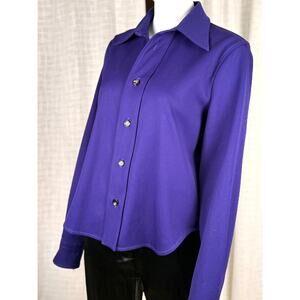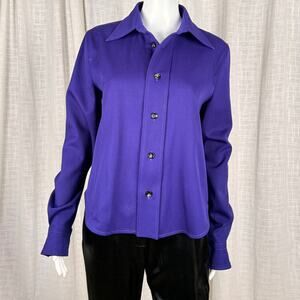 Simple yet statement Botega Veneta blouse can be worn as a button down, or open over a tank as a light jacket. Perfect transition piece from winter to spring. Size 42.