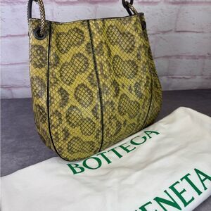 Authentic Bottega Veneta Small Loop Anaconda Shoulder Bag Green