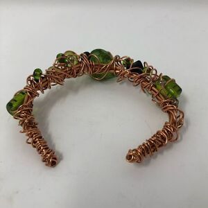 Bracelet Twisted Copper Wire Green Glass Beads