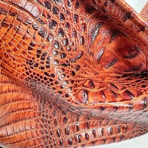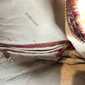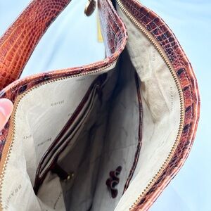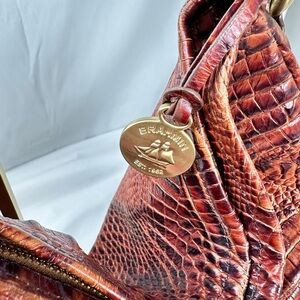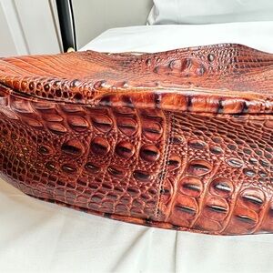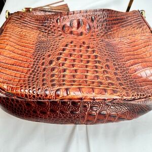 Brahmin Authentic Croc Lauren Pecan Leather Shoulder Bag w/Tassel/Hand Tag