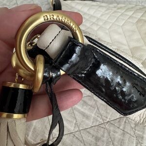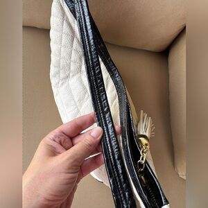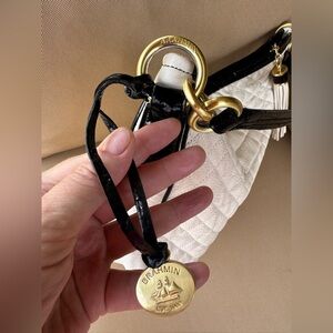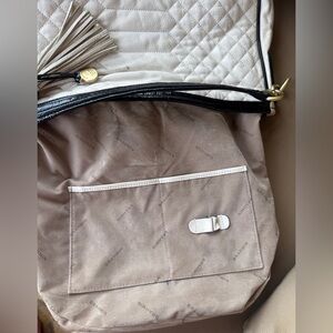 Elegant and functional, this Brahmin Kathleen slouchy hobo tote is crafted in luxe crème Florentine quilted leather with black trim. Features a soft, relaxed silhouette, gold-tone hardware, and signature tassel detail. Spacious interior makes it ideal for everyday use, while the sophisticated color combo elevates any outfit.