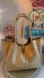 Brahmin Melbourne shoulder bag, beautiful bag the gold on it is beautiful. It's not scratched up. It's really nice. The interior has a nice middle zip divider as well as pocket on either side of that with additional sidewall pockets. The interior is also made of suede. It has bottom feet for support the call out the rivet on one of the handles on the front and one of the handles on the back is missing. This is an easy fix or the bag is fine without it. The handles are secure anyways measures 18 inches across 10 inch height 5 inch width