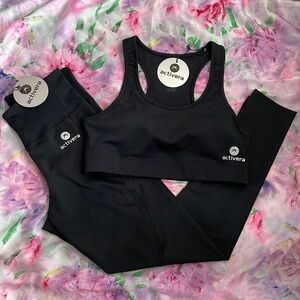 Brand New Activera Black High Waist Tummy Control Leggings & Padded Sports Bra Set. I only have three sets of these available—one size Small, one size Medium & one size Large—act fast!