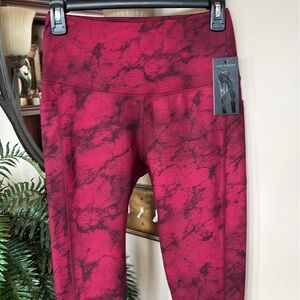 Brand New LegEnd Leggings Red Marble 7/8 High Waisted w/ Pockets Activewear