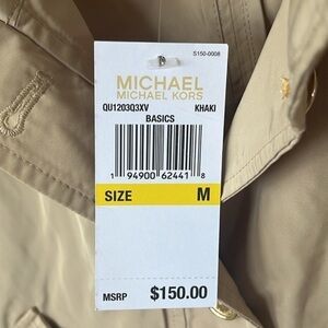 Brand New Michaels Kors Khaki Drawstring Waist Button Up Jacket Neutral Casual.  Gold tone buttons and accents.  Women's size Medium.  Very classy & stylish!