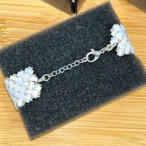 Meticulously handwoven to create a unique and exquisite design. Crafted with love and care, this bracelet is the epitome of elegance. The combination of white and silver creates a sophisticated and versatile accessory that can be effortlessly styled with any outfit.