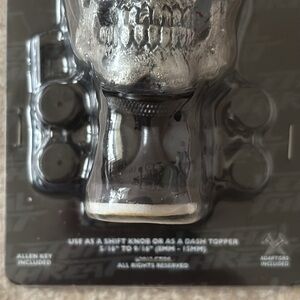 Novelty silver skull shift knob or dash topper with red eyes. Highly detailed design.