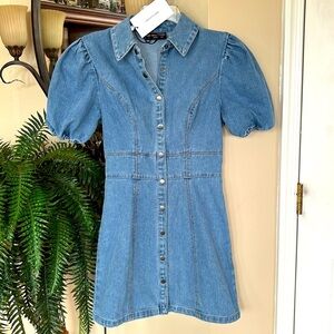 Brand New The Fifth Label Denim Jean Dress Puff Sleeve Button Front Blue Mini.