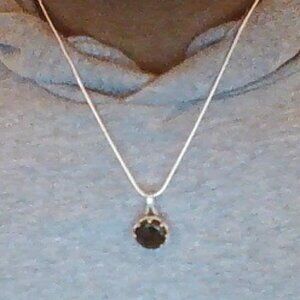 Brazilian Smokey Quartz Zircon solitaire necklace in Sterling Silver 7.35 ctw