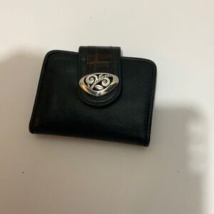 Brighton Black Pebbled Leather & Brown Croc Embossed Crossbody Wallet Organizer
