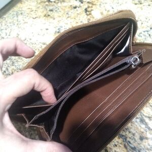 Brighton Croc Pebble Leather Full Zip Wallet Brown Clutch 8" Long