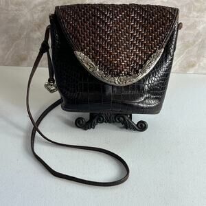 Brighton Crossbody Bag Woven Croc Embossed Brown Leather Metal Detail on Flap