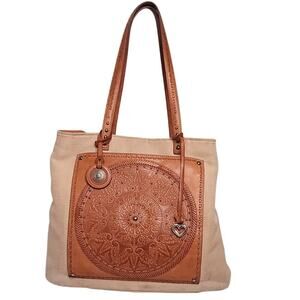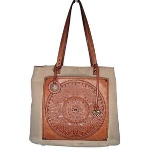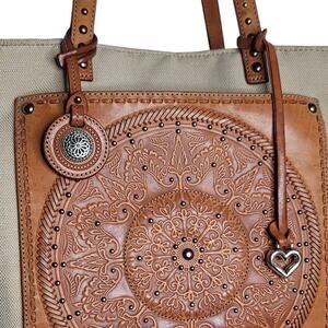Brighton Ferrara Coll Giovana Canvas & Leather 3D Medallion Convertible Tote Bag