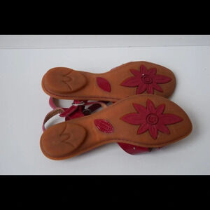 Size  9. Patent Leather upper & leather linings. Fuchsia color with silver tone studs details.