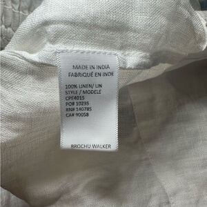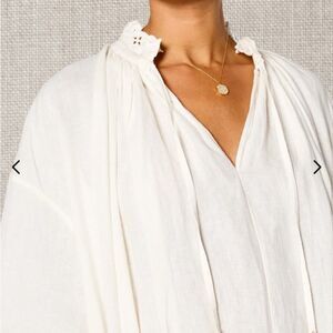 Our St. Tropez Dress was inspired the effortless style of South of France. In an oversized, short, silhouette, this every day, linen dress features short sleeves and a versatile, dropped, elasticized waist. A feminine, embroidered, ruffle collar and a deep vee neckline add romance and the end tips of the self-tie waistband and collar are perfectly finished in vegan leather adding a bit of flare to this casual-chic must-have.
