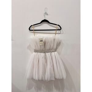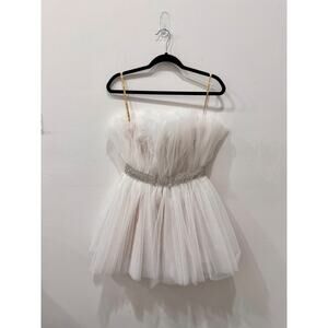 Bronx & Banco Anna Blanc Strapless Rhinestone Waist Tulle Mini Dress White XS