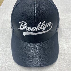 Brooklyn New York Baseball Cap Adjustable Hat Embroidered Logo Faux Leather