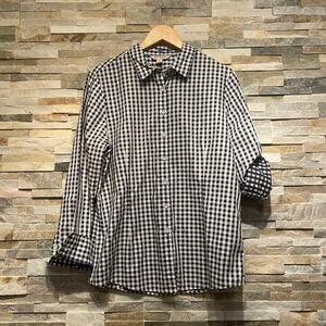 Brooks Brothers Red Fleece 14 Shirt | Black White Gingham, Cotton Button Blouse