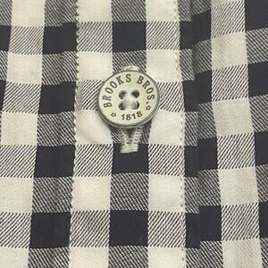 Classic Brooks Brothers Red Fleece button-front shirt in a timeless black and white gingham check pattern. Features contrast inner cuff detail, signature Brooks Brothers logo buttons, and a crisp cotton feel. A versatile wardrobe staple that works perfectly for business casual, weekend wear, or layered looks.