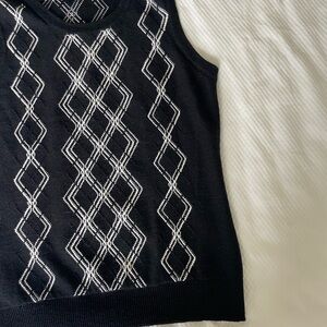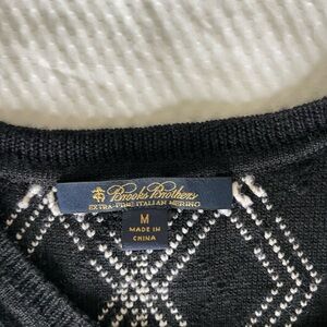 Brooks Brothers Wool Black Sleeveless Top Vest with White Geometric Pattern