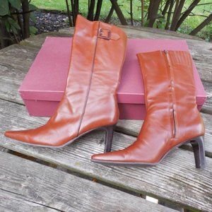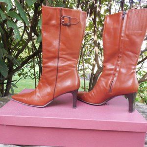 Step out in style with these elegant brown heeled boots. Perfect for any occasion, they offer both comfort and sophistication.