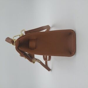Brown PU Leather Tote Purse Satchel with Gold Hardware