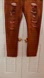 These orangish jeans feature a distinctive distressed design with large rips and tears, offering a trendy and worn-in look. The rich brown color adds a unique touch to your wardrobe, making them a standout piece for any casual occasion.