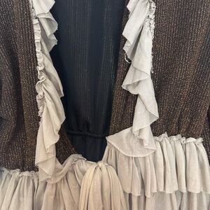 Free People ruffle cardigan, metallic shimmer boho sweater, FP tie front wrap top, festival style cardigan