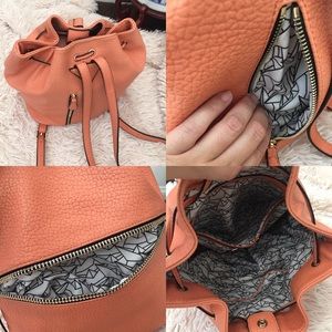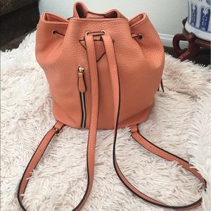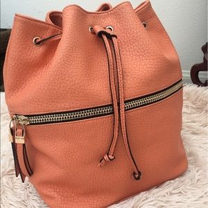 Salmon colored bucket backpack by Urban Expressions. This bag is used and loved. Clean interiors and still in great condition. Black stains located in the bottom of the straps as shown in photos. These black stains were due to contact with my clothing because I'm always wearing black. ๐ It's a pretty and fun bag with enough pockets. Feel free to make a fair offer.