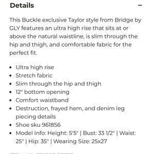 Gently worn Buckle Bridge By Gly Ultra High Rise Ankle Crop Jeans women’s size 28. Stretch denim, ultra high rise waist, five pocket styling, straight fit, frayed bottom hems, hits at ankle- crop length. Offers accepted!