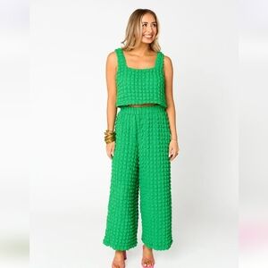 This darling set is perfect for all your summer adventures! It comes fully accessorized with high waisted straight leg pants and a tank top that can be worn on its own or as a bathing suit cover up. Plus the material is SUPER stretchy and the pants have pockets so you'll have room for all of your must-haves!