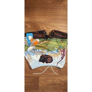 Shorts are pullon with encased elastic waist and drawstring large 17 waist unstretched 23" stretched 16" long