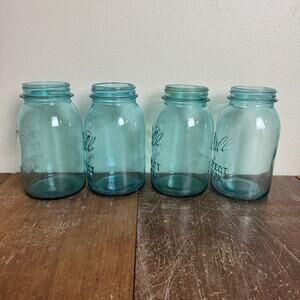 Bundle of 4 BALL 1923-1933 Blue Glass Quart Jars Kitchen farmhouse decor