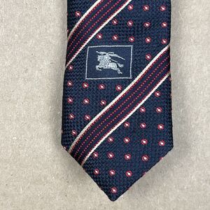 Burberry London Tie 59” X 3.5” Silk Navy Blue Stripes Dots Made In Italy