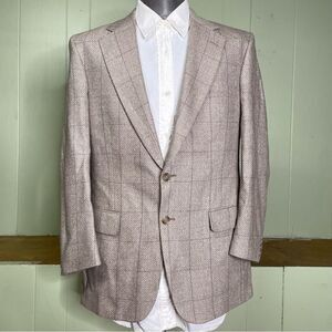 Burberry Tan Windowpane Check Wool Blazer Sports Coat 2 Button Mens 38R