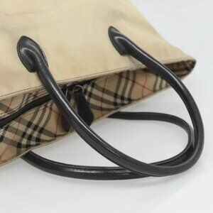 Burberrys Blue Label Tote Bag Nylon Beige Silver Auth ti3066