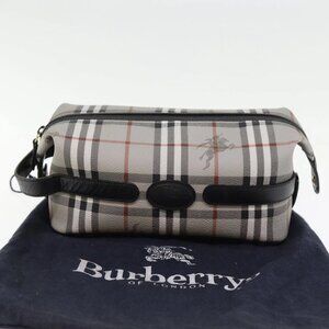 Burberrys Nova Check Clutch Bag PVC Gray Auth 77007V