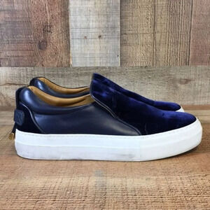 Buscemi Blue Leather Velvet Slip On Sneakers Womens 39 9 Shoes Mens 6 Designer