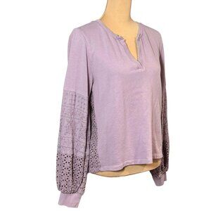 By Anthropologie Eyelet Sweatshirt Top Sz.S Lilac Oversized Embroidered Boho