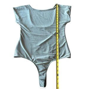 By Together Women’s M Square Neck Cap Sleeve Bodysuit Fog Gray Elevated Basic