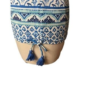 CABANA LIFE Blue White Gold Embroidered Ruched Rashguard Swim Top