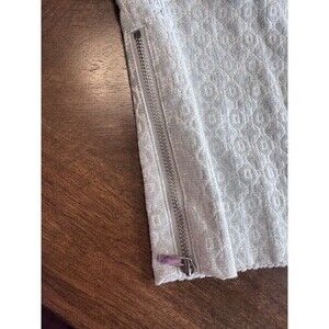 CACHE Silver and White embroidered dress straight Pants, Zipper Hems, Size 10