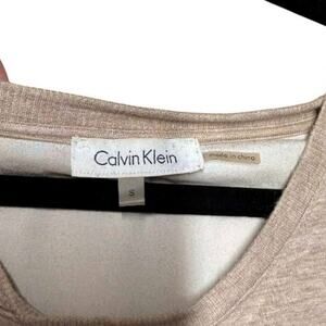 CALVIN KLEIN LAGON LOOK LONG SLEEVE SPLIT BACK TOP CREAM AND WHITE SIZE S