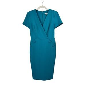 NWT - CALVIN KLEIN Short Sleeve Side Button-Trim Career Sheath Dress Teal - Sz 4