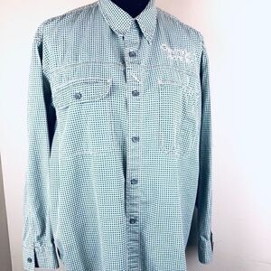CALVIN KLEINđChecked Plaid Button Down Shirt Top, Beige Green