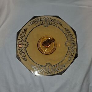 CAMBRIDGE AMBER GLASS Serving Sandwich Tray! Art Deco Design,Sterling Etching!