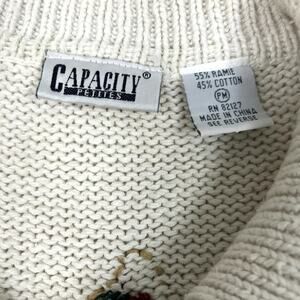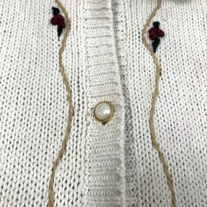 CAPACITY VTG Embroidered Long Cardigan Women M Ivory Linen/ Cotton Retro Grandma Cottage Y2K