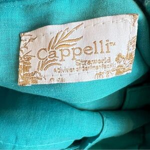 CAPPELLI STRAWORLD Turquoise Crochet Toyo Straw Wooden Grip Satchel Tote Handbag